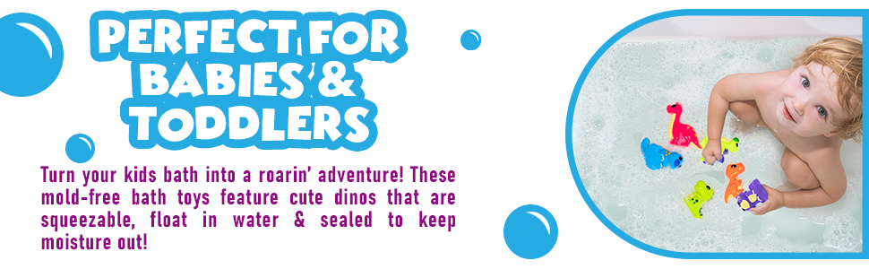 FUN IN THE TUB: Turn your toddler bath into a roaring dino adventure! These mold free bath toys feature cute toy dinosaurs that are squeezable, float in water & sealed to keep moisture out!
