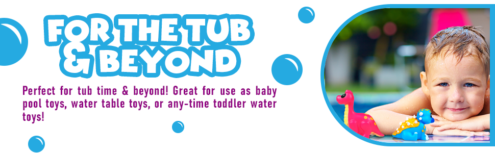 VERSATILE WATER PLAY: No Hole Bath Toys are perfect for your kids bubble bath & beyond! Great for use as baby pool toys, water table toys for toddlers, summer dino toys or any-time toddler water toys!